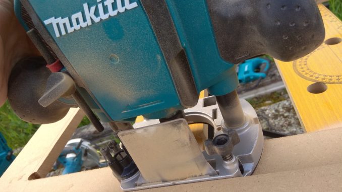 Das aussägen des inneren Rechteck war Dank Handkreissäge☆ und Stichsäge☆ überhaupt kein Problem. Einfach mit Schraubzwingen eine Latte als Führung befestigen und daran entlang sägen. Zum Einbau des Monitors wollte ich dann eine Vertiefung fräsen, in welcher ich diesen einfach einlegen und von hinten fixieren kann. Hat dann den schönen Vorteil, dass man nicht so eine dicke Materialstärke um den Bildschirm herum hat. Das Fräsen mit der Oberfräse☆ hat (obwohl ich es zum ersten mal gemacht habe!) super geklappt! Danach alles mit der Schleifmaschine☆ schön glatt gemacht und mit einem feuchten Lappen von Staub befreit.